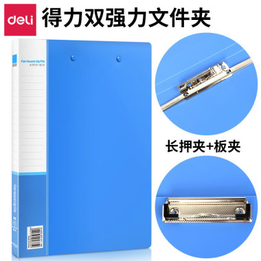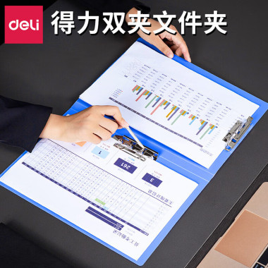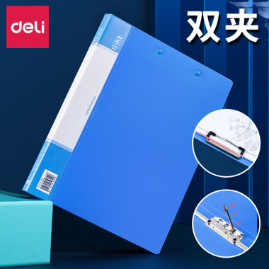 得力5342双强力夹/双夹文件夹/资料夹两个夹子A4蓝色