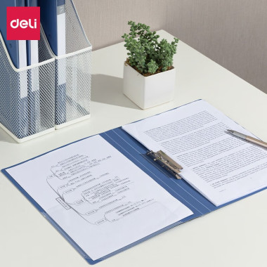 得力5349长押夹板夹/蓝色塑料双夹文件夹/文件整理夹